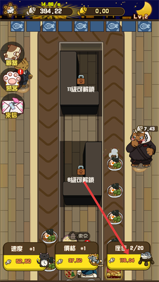 3、優(yōu)先布置餐臺座位布局、做餐速度來滿足顧客的口味以及照顧到客人情緒,獲取小魚干的收益。