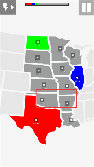 1、采用抽象化的數(shù)字與色塊表現(xiàn)戰(zhàn)爭,剝離復(fù)雜畫面,讓你能完全專注于最核心的兵力計(jì)算、區(qū)域控制與戰(zhàn)略博弈本身。