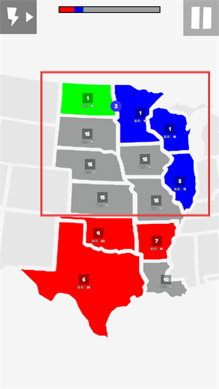 1、規(guī)則簡單直觀,通過拖動(dòng)數(shù)字分配兵力即可操作,新手能快速上手,但想精通需要深入理解攻防節(jié)奏與時(shí)機(jī)判斷。