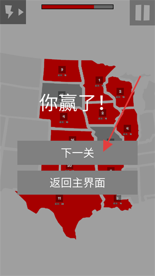 4、當(dāng)界面顯示【你贏了!】時(shí),點(diǎn)擊【下一關(guān)】可繼續(xù)挑戰(zhàn)新對(duì)局,或選【返回主界面】回到關(guān)卡選擇頁。