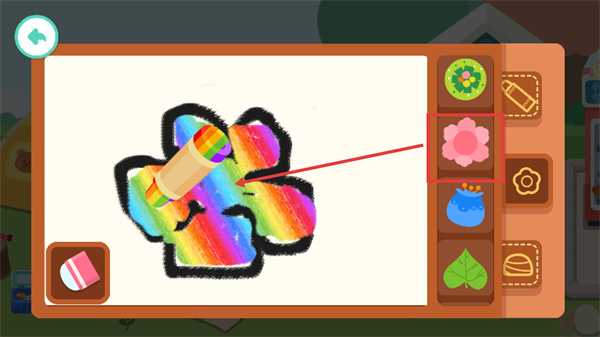 4、完成輪廓繪制后,點擊紅色框選的【花朵】裝飾元素,為圖案添加裝飾,豐富繪畫作品的內(nèi)容。