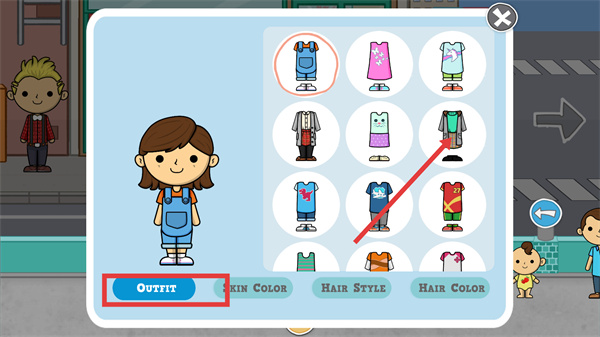 2、點擊底部衣架圖標(biāo),進入服裝自定義界面,選擇【OUTFIT】中的綠色外套,為角色搭配造型。